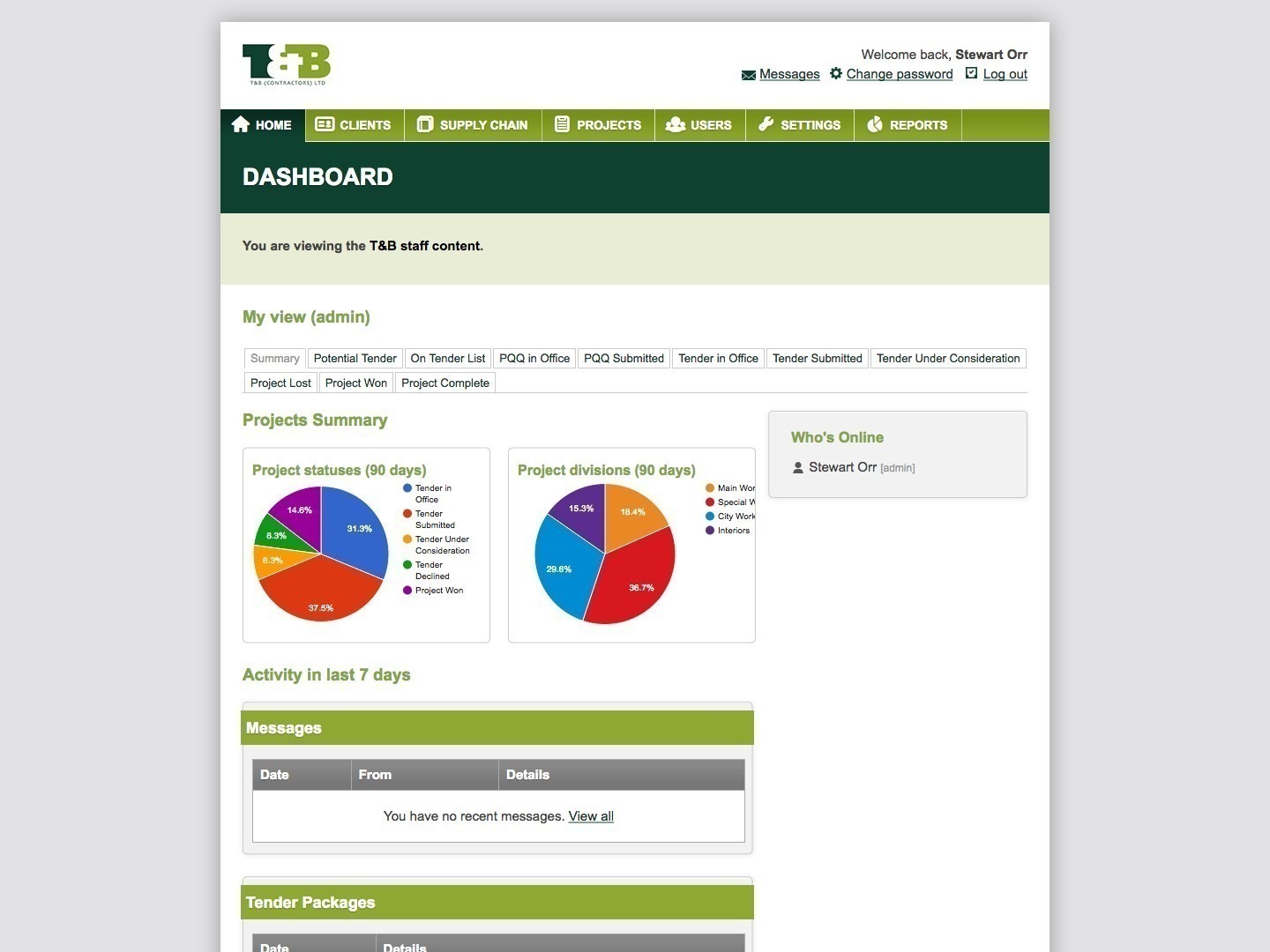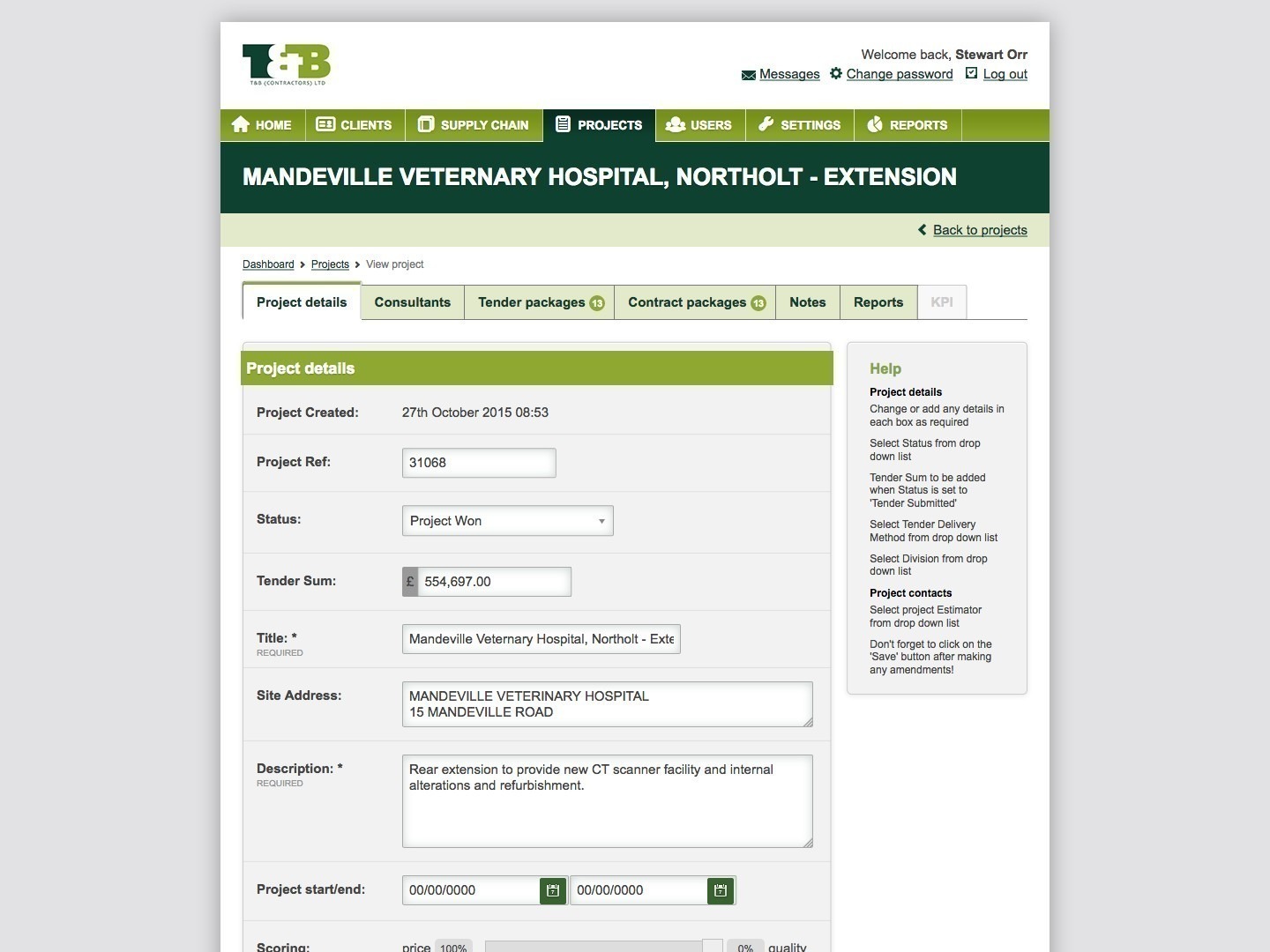 T&B Contractors Portal was designed and built completely from scratch and handles over 500 sub-contractors and their projects. The portal went live in March 2014.